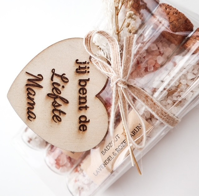 Dankzij het gepersonaliseerde houten hartje is deze badzout set een prachtig cadeau voor verschillende momenten, zoals: