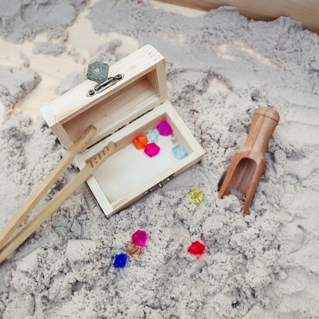 Deze schatkist sensory play set is ideaal voor gebruik in een sensorische speelbak met rijst, speelzand of kinetisch zand.
