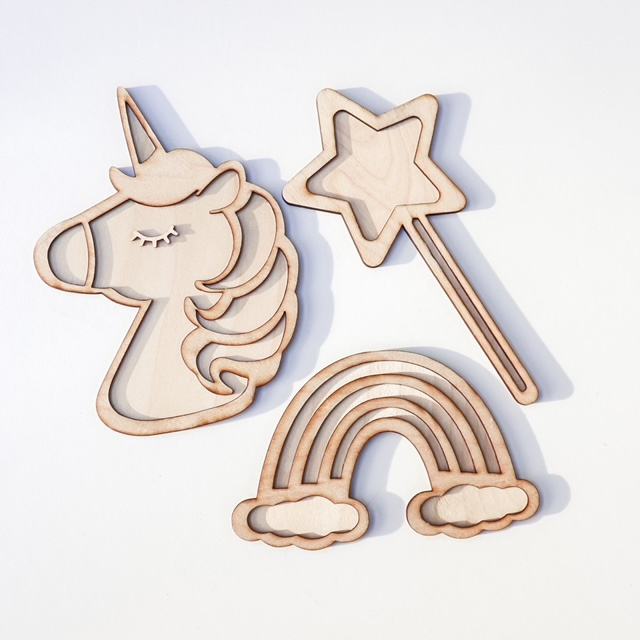 ✔ Houten vulvormen in eenhoorn thema. De vormen hebben een lengte of breedte afmeting tussen de 15-17 cm.