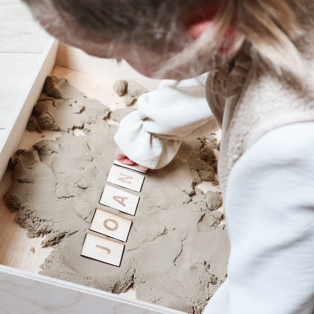 - letters stempelen in sensorisch zand