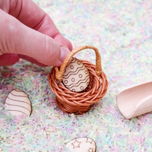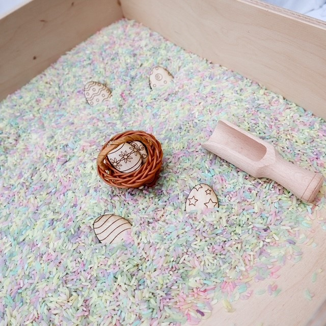 Deze sensorische Paas speelset is ideaal voor gebruik in een sensorische speelbak met rijst, speelzand of kinetisch zand.