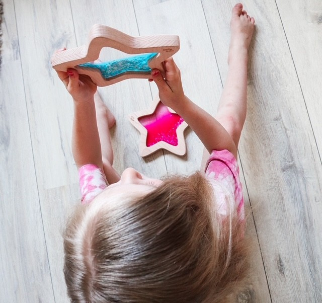 Sensorisch speelgoed helpt kinderen hun zintuigen te ontwikkelen. Terwijl kinderen de ster bewegen, ontdekken ze hoe de inhoud reageert en verandert.